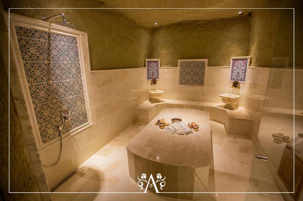 Kapadokya’nın Kalbinde Eşsiz Bir Mağara Deneyimi Göreme Milli Parkı sınırlarında, tarihi Çavuşin Köyü’nde yer alan Azure Cave Suites, Kapadokya’nın doğal mağara dokusunu modern konforla buluşturan seçkin bir konaklama alternatifi sunar. Tarihi taş işçiliğiyle inşa edilmiş odalarımızda sabahları gökyüzünü süsleyen rengarenk balonlara uyanabilir, akşamları ise vadilere karşı gün batımının keyfini çıkarabilirsiniz. Her biri özgün mimariye sahip Mağara Suitlerimiz; çift kişilik ve twin seçenekleriyle hizmet verirken, konuklarına otantik ve huzur dolu bir atmosfer vadeder. Ayrıca, özel jakuzili ve şömineli odalarımız, Kapadokya’da romantik ve konforlu bir konaklama arayan misafirlerimiz için ayrıcalıklı bir deneyim sunar. Otelimizde Wi-Fi, havaalanı transferi, kuru temizleme, araç kiralama gibi pek çok olanak sunulmaktadır. Evcil hayvan kabulü önceden onay şartıyla mümkündür. Azure Cave Suites – Zamanın dışında bir deneyim için sizi bekliyor. Mimari Yapı Hakkında Bilgilendirme Otelimiz, engebeli arazi üzerinde ve geleneksel mimariye uygun şekilde inşa edilmiştir. Bazı odalarımıza merdivenle ulaşım sağlanmaktadır. Bu nedenle yaşlı, hamile, küçük çocuklu veya hareket kısıtlı misafirlerimizin rezervasyon öncesinde detaylı bilgi alması önemle tavsiye edilir. Evcil Hayvan Politikası Evcil hayvanlar önceden onay alınması şartıyla kabul edilmektedir. Misafirlerimizin evcil dostlarının tuvalet eğitimli olması ve odada yalnız bırakılmaması rica olunur. Odaya zarar verilmesi veya hijyen kurallarının ihlali durumunda temizlik ve zarar tazmin ücreti yansıtılabilir.